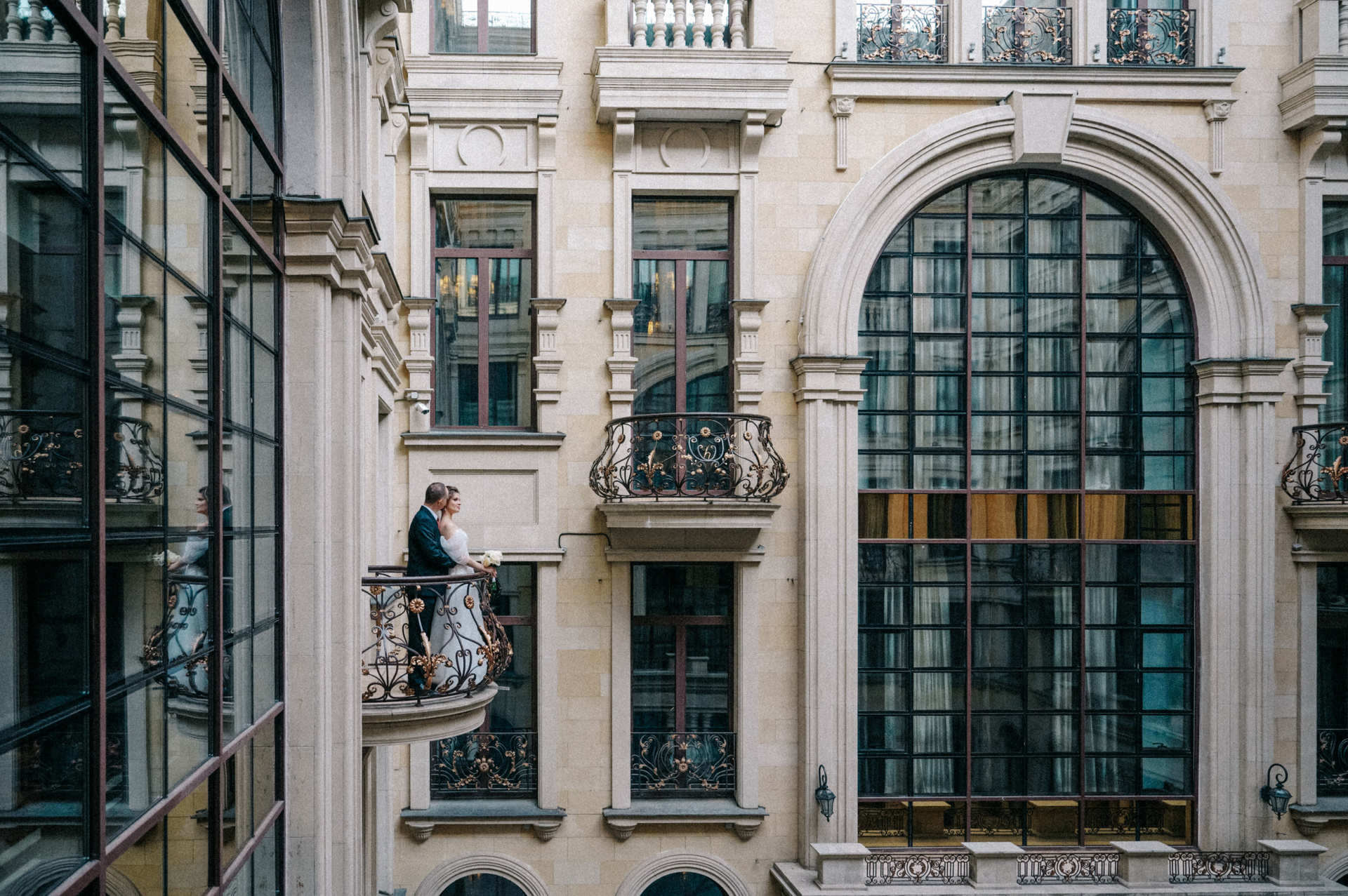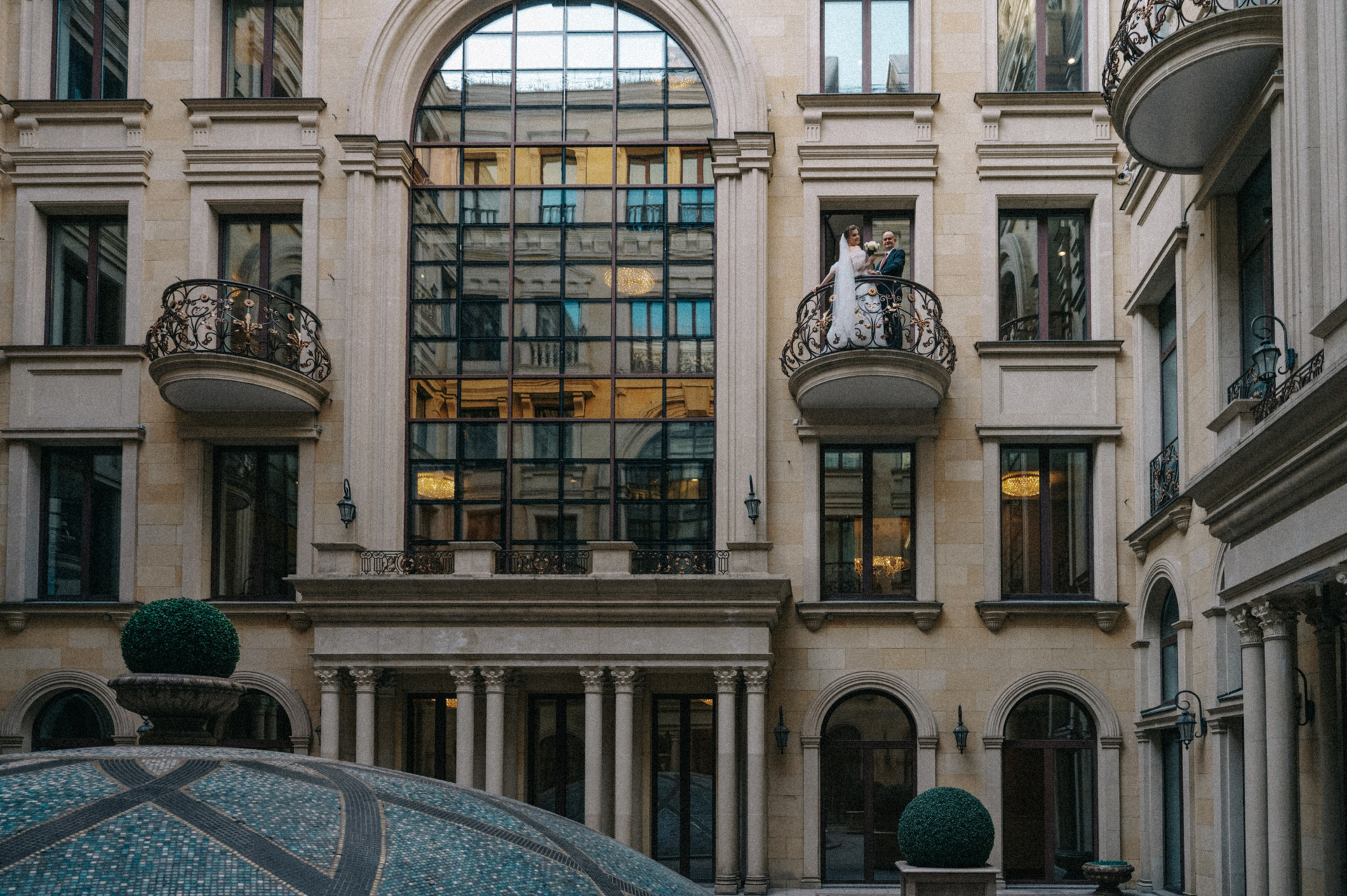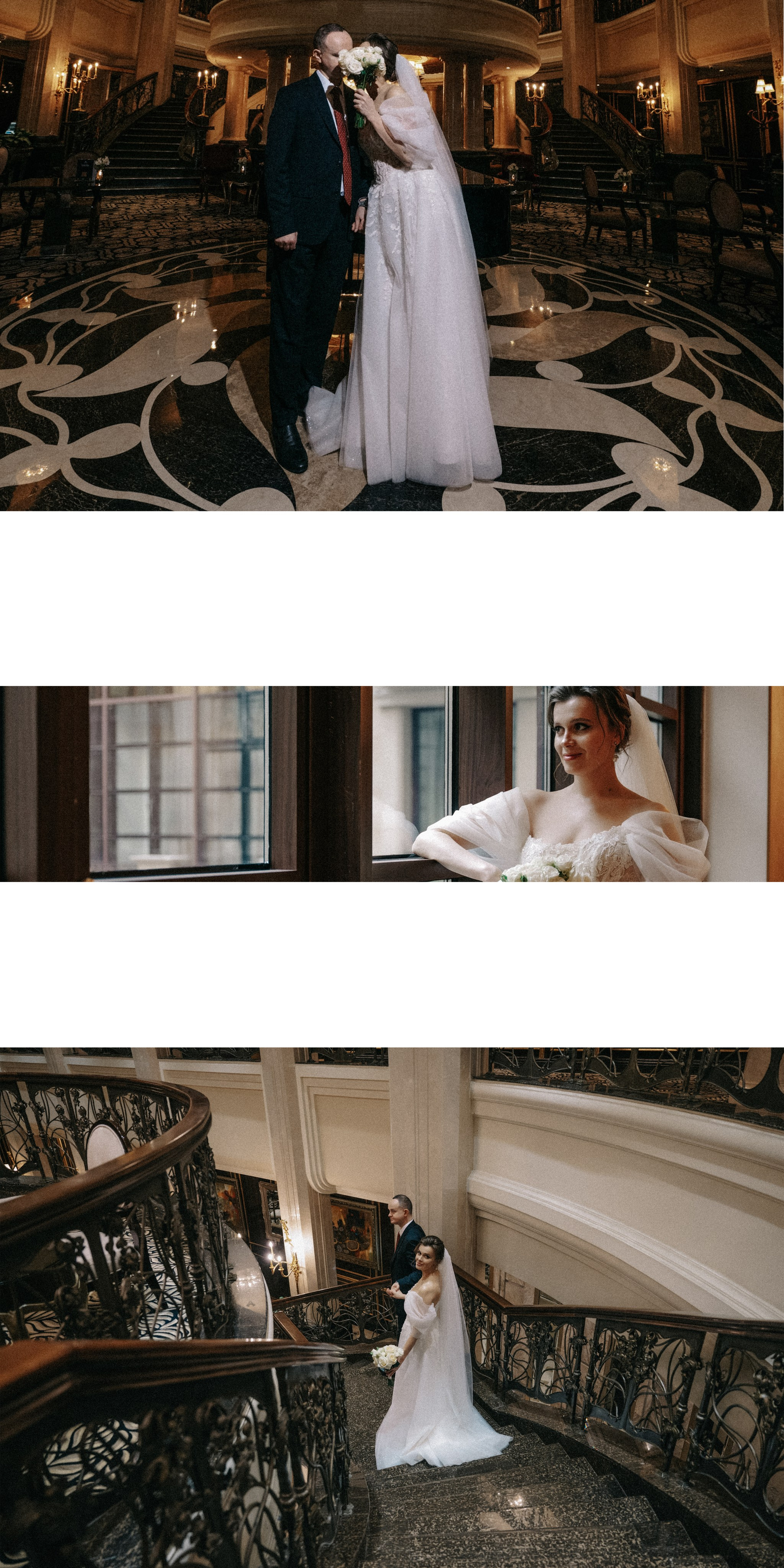 Основная фотосессия в The St. Regis Москва. Для съемки отель предлагает несколько локаций. Возможно выйти во внутренний дворик. Если с собой будет широкоугольный объектив, то это поможет «расширить» пространство. Его там достаточно, но как будто вся перчинка именно в общем впечатлении от архитектуры. Вторым местом, где предлагают погулять, является основной холл отеля. Роскошно, атмосферно, масштабно. На протяжении всей фотосессии вас будет сопровождать сотрудник отеля. Подскажет, поможет — сервис прекрасный. И третья локация — это номер. Мы уделили ему немножко внимания, так как добрались уже поздно и прям хотелось отдохнуть. Но при желании номер можно тоже прекрасно использовать для задач фотосъемки. Отдельно скажу, что еще в отеле прекрасная входная группа, которая может стать частью фотоистории. А также есть коридоры. Сейчас модно =) При этом, стоит уточнить, что фотосъемка на территории данного отеля оплачивается отдельно. Имейте это в виду.